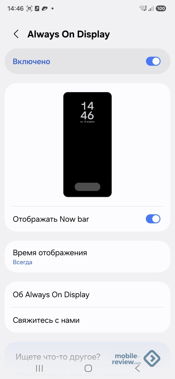 Присутствует режим AoD, тут все типично для компании, вы можете выбрать часы, заставку, но не вывести картинку на весь экран, как во флагманах. Но и этого достаточно. Можно включить работу AoD по расписанию, всегда или при приходе новых уведомлений (как вариант, по касанию экрана).