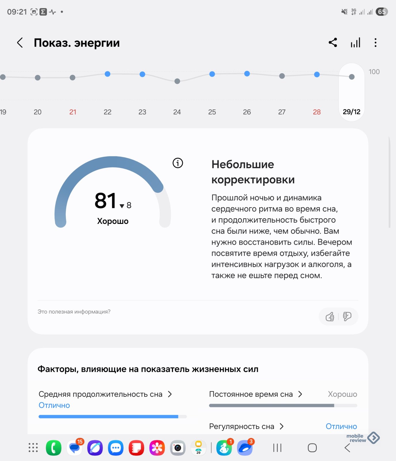 Часы достаточно просто носить на руке, чтобы они собирали все эти данные и потом в простой форме показывали вам результаты измерений. Многие игнорируют их, считают как минимум баловством. Для меня часы — помощник, например, в сложные периоды, когда много работы, я предпочитаю спать в них, смотреть на результаты измерений сна и других параметров (сосудистая нагрузка, температура тела и композитный индекс, показывающий восстановление организма). На практике понял, что композитный индекс хорошо иллюстрирует, когда я устал, а когда есть силы. И это позволяет точнее распределить свои усилия, не переусердствовать, чтобы в конечном итоге не надорваться.