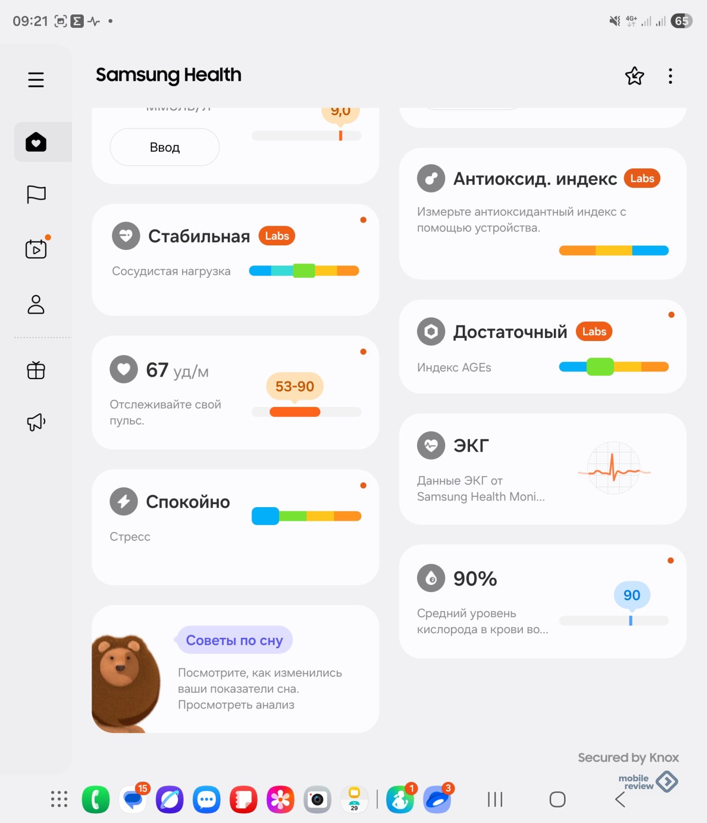 Теперь про огромный пласт функций, которые большинство привычно игнорирует, поговорим коротко про S Health. Тут измеряются разные показатели, от числа шагов, пройденного расстояния до сердцебиения, насыщенности крови кислородом, температуры тела, фаз сна, уровня метаболизма и многого другого, включая артериальное давление.