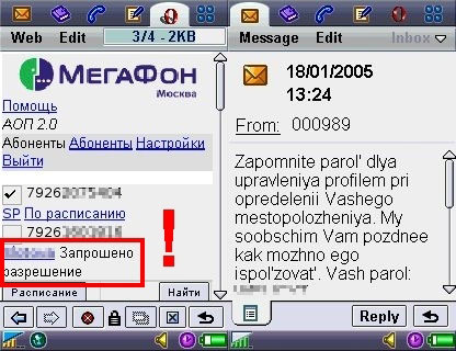 Прошли мучительную процедуру регистрации определяемого телефона? Тогда хорошо, некоторое время все будет работать. По крайней мере до тех пор, пока в МегаФон-Москва не введут новую услугу с условным названием АОП-3 и не заставят заново подключать к ней все телефоны. Некоторое время после подключения "ведомого" телефона вас будет мучить Великая Тайна Пароля (приходит SMS с паролем и обещанием когда-нибудь рассказать о том, "как его можно использовать"), но на эту тему лучше не заморачиваться, определяет без всяких паролей – и слава богу. Во всяком случае добытый в обмен на подключение пароль не дает доступа к web-интерфейсу услуги, проверено. При настройке нового определяемого телефона через web-интерфейс важно не забыть получить многочисленные подтверждения хозяина аппарата (точнее, SIM-карты) на согласие определения координат. Резюме для подключающего услугу: