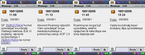 Подключение "ведомого" аппарата – не так все простоНапрашивающийся вопрос: как бы приспособиться определять координаты нужного абонента без его ведома и не заставлять его платить за это абонплату? Достаточно квалифицированный ответ – никак! Эксперименты с разными SIM-картами подтвердили: даже при получении согласия на определение от искомого абонента система работать не будет, в ответ на каждый запрос будет приходить тупое "…не могут быть определены. Телефон выключен или находится вне зоны действия сети". Местоположение начнет определяться только после отправки заветной команды PUSK (ASK, NOTIF) с определяемого телефона. Смысл (значение) команд не изменился, список функций смотрим здесь или на сайте МегаФон-Москва. Наверное, это не совсем правильный подход: за каждый запрос деньги снимают со счета запрашивающего телефона (что логично), но абонентская плата ($0.75 в месяц) снимается также и со счета запрашиваемого телефона. Отключить "себя, любимого" от коварной системы и не дать себя определять несложно: достаточно отправить текст STOP на номер 000989. Правда, остается открытым вопрос абонплаты (это протестировать не удалось), но команда UNREG на номер 000981 по идее должна решить все проблемы. В конце концов можно просто позвонить в абонслужбу МегаФон-Москва и досконально выяснить все способы само-изъятия из системы определения координат, принудительно и без вашего ведома подключить вашу SIM-карту никто не сможет.