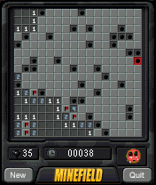 Теперь в сапёра можно играть и на телефоне. В игре 2 уровня сложности, различающихся только размером игрового поля, hard доступен только в зарегистрированной версии. Игра поддерживает сохранение. Управление осуществляется только джойстиком. Следует заметить, что полную версию игры можно получить бесплатно, если купить любую игру от Noumena.