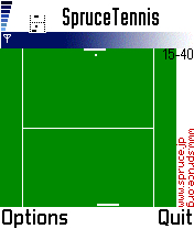 Все пользователи Nokia 7110, конечно же, помнят игру Tennis, которая была представлена только в нём. Теперь пользователи телефонов с поддержкой j2me могут играть в теннис на своём мобильном телефоне. Spruce Tennis достаточно простая реализация этой игры, Вам даётся возможность управлять ракеткой только на границе игрового поля и два типа удара – простой и усиленный. Игровое поле можно устанавливать как вертикально, так и горизонтально. Немного раздражает, что Ваш оппонент почти всегда использует только простой удар, победить его слишком легко. Звука в игре нет.p>
