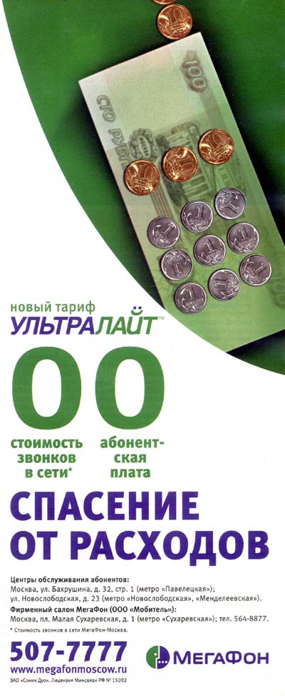 Фото дня. Мегафон, тариф Ultralite [ 25-11-2002 11:58 ]