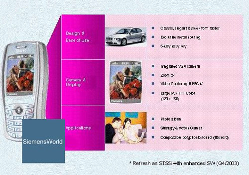 Часть наших читателей выразила сомнения в том, что компания Siemens выпустит на рынок модель ST55, которая производится на мощностях Arima и является полностью ее разработкой. Для сомневающихся приводим несколько слайдов из оригинальной презентации компании, приносим извинения за низкое качество.