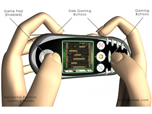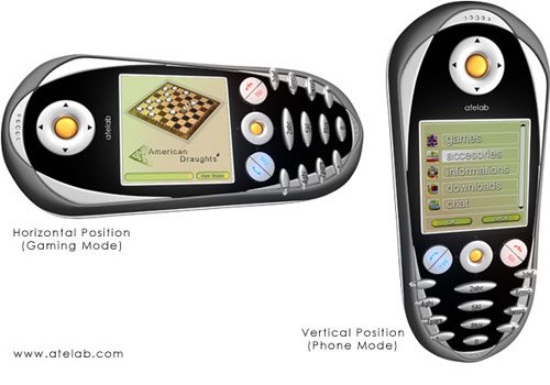 Существует целый ряд компаний, которые занимаются тем, что, предлагают концепцию дизайна производителям, а те уже адаптируют их под свои нужды. Последним примером такого рода может служить разработка игровой консоли от компании ATELAB Research Group. Вертикально устройство представляет собой обычный мобильный телефон, но стоит перевернуть его горизонтально и перед вами самая настоящая игровая приставка. К интересному решению стоит отнести джойстик, вписанный в динамик аппарата, в режиме игры им достаточно легко пользоваться. По большому счету предложенный концепт им только и является, поэтому обсуждать техническую начинку бесполезно, она будет соответствовать возможностям производителя лицензировавшего эту разработку.