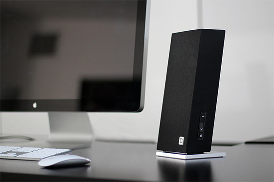 Definitive Technology Sound Cylinder Дизайн, конструкцияСистема поставляется в компактной коробке ничего лишнего внутри нет, уложено все как надо, мне такой подход очень нравится. Две колонки, соединительные кабели, при установке вряд ли вам понадобится инструкция. Только не забудьте правильно поставить колонки, на нижней части написано, где правая, а где левая. Хотя я особой разницы не заметил. Подставки сделаны из металла, корпус затянут аудиотканью. На одной из колонок находятся все органы управления, это кнопки включения, регулировки громкости. Жаль, что нет пульта, с другой стороны, он особо и не нужен. Колонки между собой соединяются оптическим кабелем TOSLINK, затем колонки подключаются к компьютеру, тут используется обычный USB. Я пробовал это делать с MacBook Pro 15 Retina, после подключения нужно зайти в настройки и выбрать там источник звука – Incline. Как видно, колонки находятся под наклоном, сделано это не просто так, на сайте написано, что такая конструкция необходима для обеспечения лучшего качества звука. На левой колонке находится небольшой световой индикатор, выглядит неплохо.