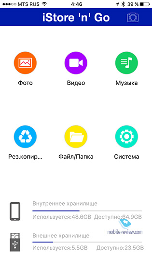 Приложение умеет воспроизводить сложное видео, например, в контейнере mkv, не пугают его даже встроенные субтитры. Однако переключить аудиодорожку вы не сможете, также как и выбрать язык субтитров (если вдруг по умолчанию там английские). Кроме того, нет возможности открыть файлы с помощью конкретного приложения или же залить тяжелые видео в память айфона. Это, конечно, минус. «Можно получить доступ и к файлам с вашего айфона или iPad, однако нельзя выделить сразу большое количество контента, поэтому использовать MediaShare Mini в качестве резервного хранилища для фотографий не получится. Вы просто замучитесь их переносить» — именно так я подумал сначала. Однако более детальный поиск по приложению дал понять, что это сделать можно, главное – использовать именно режим файловой системы. С его помощью вы сможете перенести ваши фотографии на карточку и затем удалить их с устройства. А еще флешка умеет делать резервную копию вашего устройства, в зависимости от объема это может занимать от нескольких минут до получаса. В результате бэкапа копируются ваши фотографии, видео и музыка.