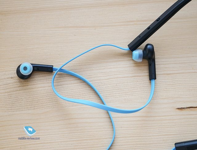 Корпус Jabra Halo Smart защищен от ветра и воды, так говорится на официальном сайте, на самом же деле речь о базовой защите от капель, не более того. В официальных источниках нет ни слова об использовании в спортивных целях, но я вполне могу рекомендовать гаджет и для таких задач. Оголовье не стремится свалиться с шеи, сидит крепко, не сваливается даже во время прыжков. Проводки не мешают, если подобрать насадки, то вы не будете чувствовать наушники - в общем, очень даже неплохо для спортзала. По умолчанию установлены самые маленькие насадки, советую поменять и потратить пять минут на подбор, это повлияет и на комфорт, и на звук.