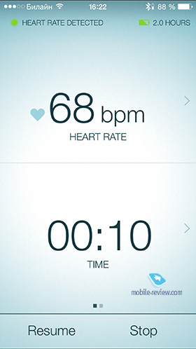 В паре с Jabra SportLife работает приложение Jabra Sound, при подключении iPhone появилось окно о том, что можно скачать утилиту из AppStore, что я и сделал – и рекомендую сделать это всем владельцам. После установки нужно будет ввести код, он указан на купоне, если соберетесь покупать гарнитура на вторичном рынке, обратите внимание на наличие кода в комплекте. Так вот, во-первых, это неплохой плеер, способный работать со всей музыкой, загруженной на устройство с iOS. Во-вторых, тут есть очень удобный эквалайзер с предустановками, сразу же слышно, как меняется звук, играться с «пресетами» очень интересно. При желании можно создать свой. В-третьих, тут есть функция Dolby, но мне показалось, что когда эффект работает, звук становится тише, тут уж смотрите сами, использовать или нет. Наконец, когда гарнитура подключена к iPhone, программу можно быстро запустить, нажав кнопку на левом наушнике. Музыку Jabra Sport может брать либо из вашей библиотеки, либо из Jabra Sound. Если включить GPS, то происходит запись маршрута. Интересно, что наушники могут использоваться с Endomondo, RunKeeper, Strava и другими приложениями для бега. Доступно что-то вроде планирования, можно задать необходимые цели. Мне еще очень понравилось, что во время тренировки можно сразу же ответить на вызов, не притрагиваясь к смартфону, особенно это актуально в зале, и особенно это актуально в случае с iPhone 6 Plus, я его обычно оставляю на окне или где-нибудь неподалеку. На качество звука это не влияет, качество передачи речи отличное, микрофон находится в пульте ДУ, пульт же находится около рта. Время работыЗаявленное время работы составляет 5,5 часов, разъем microUSB находится под насадкой, для зарядки потребуется около трех часов. На экране iPhone отображается индикатор заряда гарнитуры. МузыкаКачество звука хорошее, это я говорил и про Pulse. Пока бегаешь или отжимаешься, не слишком обращаешь внимание на качество звука, но, в целом, мне не к чему придраться - громкость достаточна, дальность работы приемлема и гарнитура не теряет связь на расстоянии нескольких метров. Для спортивной гарнитуры звук неплох. ВыводыВ рознице гарнитура стоит 9990 рублей, можно считать, что это бюджетная версия Pulse - соответственно, без измерения пульса. От себя скажу вот что, если вы решили начать заниматься, то стоит купить абонемент в спортзал и потратить 10000 рублей на тренера, а не на всякие технические финтифлюшки.
