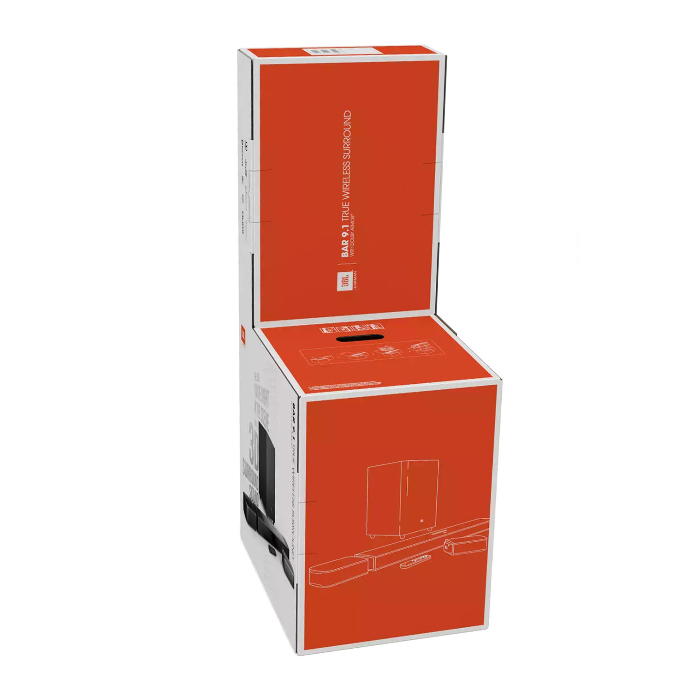 Внешний видВо-первых, стоит отдельно сказать об упаковке Bar 9.1. Она напоминает стул, завернутый в плотный картон. Знакомые, приходящие к нам в гости, обращали внимание на JBL и удивленно спрашивали: «Это что – стул? Первый раз видим, чтобы его упаковывали так качественно». После распаковки всех элементов системы я был под впечатлением дизайна. Технохудожники подошли к своему делу действительно серьезно: таких красивых устройств до настоящего момента я не встречал. Это настолько стильно, что не описать словами. Вероятно, фотографии и видео не передают всей полноты утонченного дизайна.