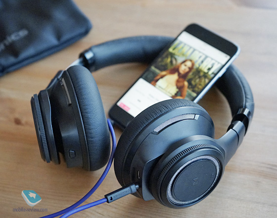 УправлениеСразу о любопытном, как только вы подключаете кабель, Bluetooth в наушниках отключается, вытаскиваете кабель – включается, световые индикаторы в металлической сеточке загораются синим. Для активации режима сопряжения гарнитуру нужно выключить, рычажок на правой чашке, потом нажать кнопку Play/Pause, удерживать, включить BackBeat Pro. Удерживать эту кнопку, пока индикатор не замигает синим и красным. Ничего сложного нет, просто запомните комбинацию. Здорово сделаны колеса управления на каждой чашке, слева отвечает за перемотку (только при подключении по Bluetooth), справа – за громкость, работает всегда, даже с кабелем. Ускоренная перемотка тоже возможна. Вообще, с кнопками тут поначалу легко запутаться. Во-первых, есть рычажок отключения ANC, системы активного шумоподавления, вы можете использовать BackBeat Pro с ней или без нее, как хотите. Во-вторых, есть кнопка отключения звука – вернее, он словно уходит куда-то в фон, вы начинаете слышать окружающие звуки и голоса, можете с кем-то пообщаться. Очень удобно. В-третьих, есть типичные элементы управления, это кнопки приема и отбоя вызова, уже упомянутая Play/Pause. После нескольких часов использования к кнопкам привыкаешь и перестаешь путаться. В Plantronics постарались максимально упростить жизнь пользователю, это хорошо.