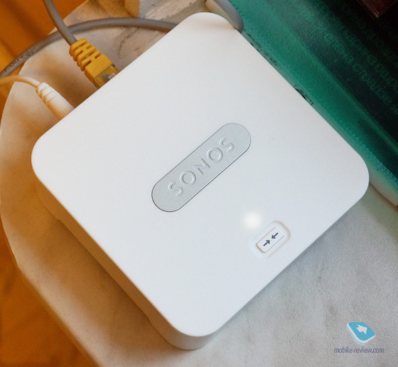ПодключениеВ других материалах о технике Sonos я расскажу и про другие способы подключения, пока же остановлюсь на том, что выбрал я. Если у вас просто колонка Play:5, то вы можете подключить ее к точке доступа с помощью Ethernet кабеля, затем установить на устройство с iOS, Android, OS X или Windows так называемый Sonos Controller, программа для управления колонками Sonos в вашем доме. Я использовал утилиту на iPhone 5S. Хочу заметить, что смартфон или планшет должен находиться в той же сети. После в меню выбираете подключение нового устройства и следуете за подсказками, нужно зажать Mute и кнопку увеличения громкости, все, далее произойдет сопряжение, и можно начинать слушать музыку. Колонка остается подключенной к роутеру, имейте этот момент в виду.
