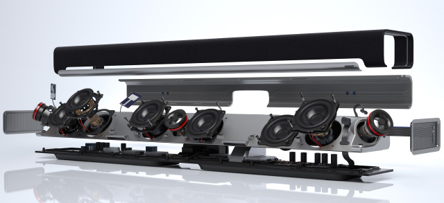 В общем и целом, тут такой же космос, как и с дизайном, ПО делали очень толковые и хитрые люди, явно любящие и себя, и потребителя. За несколько недель использования не столкнулся ни с какими проблемами, при входящем звонке музыка играет, несколько напрягает, что для регулировки громкости нужно зайти в программу, но это же доли секунды, так что не обижайтесь на Sonos. Радуют поддержка всех возможных сервисов, элементарная настройка и подключение, внешний вид приложения. ЗвукТут есть несколько интересных нюансов. Во время работы саундбара с ТВ есть пара особых настроек, первая помогает разобрать голос, помните, иногда так бывает – остальные звуки заглушают героев. Вот здесь такого нет, функция называется Dialog enhancement. В «Ночном режиме» саундбар начинает вам нашептывать звуки фильма, в соседней комнате домашние могут спать и практически не слышать, как вы смотрите «Изгоняющий дьявола». Хотя лучше все-таки использовать наушники. Эти две опции и правда полезны, то есть вовсе не маркетинговая мишура. Вовсе не мишура и возможность настроить звук саундбара самостоятельно, причем можно самому подкрутить низкие, средние и высокие частоты. Кстати, а что мы тут «подкручиваем»? Что внутри нарочито не привлекающего внимания корпуса? Внутри здесь очень интересно.