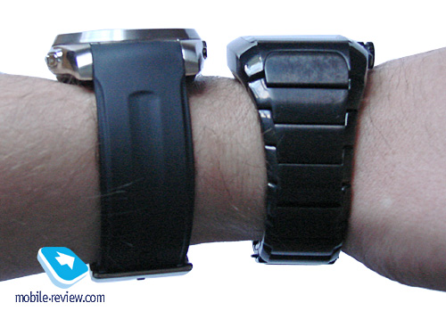 Удобно ли это? Да, крайне. Я использовал MBW-150 с Sony Ericsson W880i и гарнитурой DS-970. Знаете, очень здорово управлять воспроизведением, нажимая на кнопочки на часах, есть в этом некое хорошее ощущение технологического превосходства. Есть в этом и удобство – не надо копаться в карманах или нажимать на кнопки гарнитуры, которая спрятана в кармане пиджака. Но нужно ли это? Честно скажу, не знаю, верней, знаю, но скажу об этом в выводах. ![]() Дизайн именно спортивной версии мне понравился, он достаточно агрессивный – ремешок широкий и достаточно толстый, черно-оранжевый циферблат имеет некий шарм. Данная вещь не для ношения с костюмом, скорее, подойдет для спортивного пиджака и джинсового стиля вообще. Длина ремешка достаточна для руки любой толщины, в течение дня рука не устает, единственное, летом в таком ремешке жарко. В принципе, часы влагозащищенные, в них можно погружаться на глубину до десяти метров, делать это я вам не рекомендую, а вот помыть руки, не снимая их, можно без проблем. Контактная площадка расположена сзади, для зарядки служит специальный кронштейн, который вы надеваете на корпус, – все очень похоже на MBW-100. ![]() ![]() Помимо клавиш управления плеером на правом торце есть еще две функциональных клавиши: верхняя отвечает за действие, нижняя – за перемещение по меню. Головка предназначена только для передвижения стрелок, их всего две, секундной нет. Автоподстройки стрелок нет, будучи подключенным, на дисплее вы можете посмотреть время, оно ровно то же, что и в телефоне, если часы не сопряжены, время не отображается (прочерки). Видимо, это особенность прототипа, в коммерческой версии время должно отображаться. Чтобы узнать, который сейчас час, вы должны нажать на верхнюю правую функциональную клавишу, сперва выводится число, месяц и год, еще одно нажатие выводит на дисплей время, индикатор заряда батареи (три деления), индикатор Bluetooth-подключения. Чтобы зайти в меню, необходимо нажать нижнюю правую клавишу, нажимая ее раз за разом, вы перемещаетесь по меню. Сопрягаются часы с телефоном крайне просто – переходите к соответствующему индикатору, нажимаете верхнюю клавишу, переходите в режим. Обнаруживаются часы телефоном очень быстро, для телефонов Sony Ericsson введение кода не требуется, для других аппаратов код «0000», вот только подключение, как я и говорил, вам ничего не даст. Чтобы не утомлять вас скриншотами, я снял видео с демонстрацией основных функций, перечислю список меню и здесь: