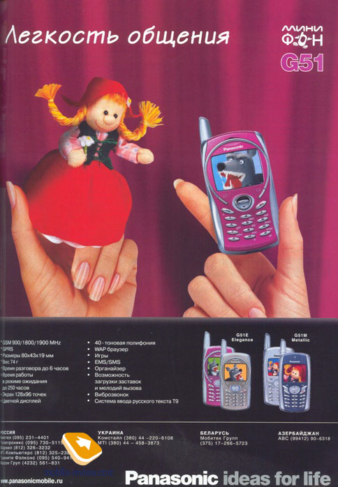 Реклама мобильных телефонов в прессе, март 2005>>> Реклама мобильных телефонов в прессе, февраль 2005>>> Реклама мобильных телефонов в прессе, январь 2005>>> Реклама мобильных телефонов в прессе, декабрь 2004>>> Реклама мобильных телефонов в прессе, ноябрь 2004>>> Реклама мобильных телефонов в прессе, октябрь 2004>>> Рекламные ролики сентября, а также другая реклама здесь>>> результаты опроса>>> Антон Щербаков