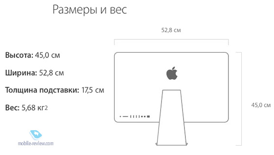 Хотел бы отдельно остановиться на качестве сборки и надежности. Мой iMac за два года практически никак не изменился внешне: ничего не отходит, не скрипит, не люфтит, не отваливается, он выглядит почти как новый. Учитывая одинаковую внешнюю конструкцию, позволю себе предположить, что и с новым поколением вряд ли что-то случится даже через пару лет. Впрочем, компьютеры Apple обычно долго служат своему владельцу, я знаю, что многие до сих пор используют iMac 2008 года и прекрасно себя чувствуют. ГабаритыКогда речь идет о настольном компьютере, его размеры не играют особой роли, и всё же на один параметр я хотел бы обратить внимание. Речь, конечно же, о толщине iMac. Удивительно, что в такой тонкий корпус смогли уместить и новый дисплей, и всю начинку, и даже блок питания.