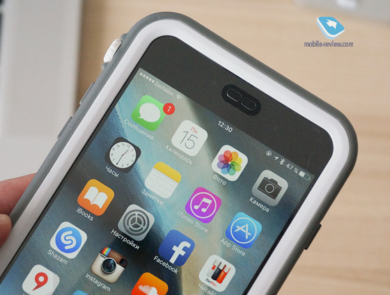 Сперва скажу насчет пленки на экране, она толстая, прилегает неплотно и порой мешает – какие-то разводы на экране и прочее. При этом «усиленное» нажатие работает, Touch ID тоже – соответственно, чехол подойдет при использовании и с iPhone 6 Plus, и с iPhone 6S Plus. Второй момент касается обязательной проверки чехла перед использованием, мне достался образец, где пленка с инструкцией уже оторвана, в новых чехлах она должна быть (не помню точно, это или пленка, или вкладыш). Посмотреть, как именно тестировать чехол, можно в этом видео. Все просто, собрали, окунули, прижали чем-то, чтобы чехол остался под водой на 30 минут, следите за пузырьками. Если их нет, значит, все хорошо, если есть – несите чехол назад продавцу. Да, еще сейчас очень много подделок Catalyst, покупайте в проверенных местах, где вам хотя бы вернут деньги. И не стоит обращать внимание на «акции» и прочее – на официальном сайте чехол, как в обзоре, стоит 75 долларов, вот и считайте сами. За тысячу рублей купить такой аксессуар невозможно. Скорее всего, это подделка.
