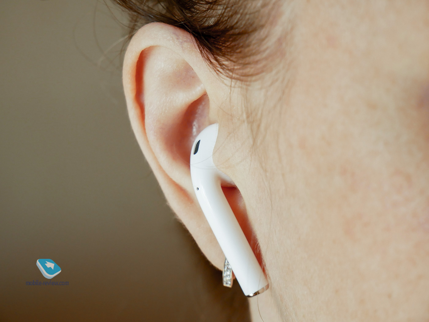Лично мне нравятся наушники вакуумного типа, поскольку звук попадает четко в ухо, не рассеивается, плюс работает небольшая шумоизоляция. Наушники AirPods в моей ушной раковине сидят относительно хорошо, не выпадают, но ощущение, что они вот-вот, да выпадут, все-таки есть. «Подсы» почти не ощущаются. Несмотря на вставной тип, у AirPods все равно есть пассивная шумоизоляция, причем вполне себе эффективная: громкие и резкие звуки отсекаются, а речь и звонкие звуки слышны. Для московского метро, конечно же, не подойдут, но справедливости ради стоит отметить, что также не подойдут и любые другие «уши» разного вида без активного «шумодава». Например, Meizu POP достают чуть ли не до мозга, но в метро включать стоит только на максималках. В общем, начитавшись в интернете об убогости Apple AirPods в плане удобства использования, пришел к выводу, что написаны такие тексты излишне придирчиво и предвзято. На мой субъективный взгляд, беспроводные наушники Apple вполне себе хороши с точки зрения посадки в ушах и легкой шумоизоляции.