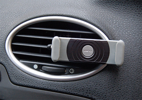 Ну и насчет Москвы, естественно, помогают «Яндекс.Пробки», у меня это основное приложение для навигации в столице. Новичкам рекомендую в настройках включить разрешение для использования утилитой геопозиции, так будет еще удобнее. Держатель для машиныТут ровно два слова, Kenu Airframe. Глупо делать обзор этой штуковины, потому что тут нечего писать, пластмассовый зажим, можно раздвинуть для смартфона или фаблета. Втыкается в дефлектор, правда, подходит не для всех автомобилей. Выглядит это примерно вот так.