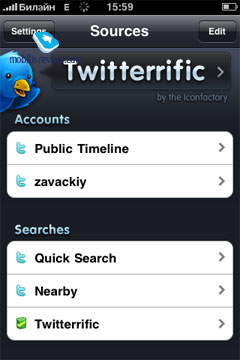 Это приложение уже сто раз описывали различные рецензенты, ну а я просто недавно завел твиттер и начал искать какое-либо приложение для основного телефона. Поиск моментально показал на Twitterrific, и искать что-то другое мне совсем не хочется, программа устраивает. Начиная с красивого дизайна, заканчивая приятными фишками, когда в ленте выделяются ваши «твиты», ответы на них, персональные сообщения. В общем, чем сто раз писать про Twitterrific, лучше один раз эту софтинку попробовать, она удобна, красива, понятна, приятна, есть даже свой браузер. В работе не возникало никаких проблем, даже при подключении по EDGE, твиты публикуются, лента обновляется. Советую. Да, чуть не забыл, еще одна фишка - это возможность увеличивать и уменьшать масштаб в одно касание, иконка этой функции находится в окне с лентой сообщений. Класс. Helium Inhaler