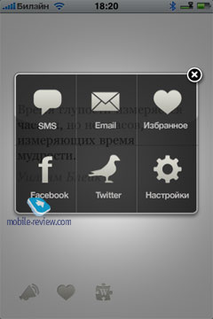 Цитатник на все случаи жизни, есть возможность отправки избранных цитат по SMS, почте, можно выкладывать в Facebook, Twitter. Удобно, всегда можно блеснуть своими знаниями. Выглядит программа приятно, после прочтения можно прямо тут же узнать информацию об авторе в «Википедии». Может быть, вам привести пару цитат напоследок? Извольте: «Безрассудство сопутствует нам всю жизнь; если кто-нибудь и кажется нам мудрым, то это значит лишь, что его безрассудства соответствуют его возрасту и положению». Автор - Франсуа де Ларошфуко. Вспомните это высказывание, когда вам будет тридцать лет, а жажда всяких новых штучек не только не будет ослабевать, а расти с каждым днем. Сергей Кузьмин (skuzmin@mobile-review.com) Есть, что добавить?! Пишите... eldar@mobile-review.com |