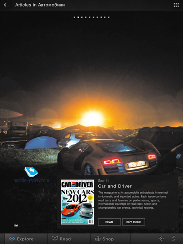 iСофт N66Сегодня у нас выпуск со странным номером, ну да ничего страшного. Хочу поделиться с вами некоторыми бытовыми наблюдениями. Во-первых, я уже как пару месяцев начал очень активно использовать iPad, и толчком послужила, как часто и бывает, некая программа. Во-вторых, я однажды решил оставить на iPhone 4 только те приложения, что я запускаю хотя бы раз в месяц. Получилось, что из ста программ осталось меньше половины. В-третьих, я как-то упустил, как в Infinity Blade появилось множество новых возможностей, начиная от мультиплеера и заканчивая продолжением после убийства чувака в кресле. Если вы, также как и я, давненько не открывали IB, рекомендую посетить, много интересного. Наконец, в который уже раз понял, что использовать iPad с фирменной «короткой» беспроводной клавиатурой - это самый оптимальный вариант. Главное, чтобы под рукой был чехол, способный удержать планшет в горизонтальном состоянии. Ну а теперь давайте перейдем к программам. Zinio (на iPad)Я писал про Zinio в рамках материалов о Samsung Galaxy S II, про iPad-версию мне рассказал приятель (Кирилл, спасибо). Сидел товарищ в аэропорту, держал в руках iPad, думал, чем бы заняться. Набрел на Zinio и порадовался. По сути, это лавка с прессой прямо в iPad. Мнения насчет программы полярны, кому-то не нравится набор изданий, кто-то в восторге и от ассортимента, и от того, как сделаны журналы. Мне Zinio нравится. Смотрите, перед поездкой куда-либо я обычно покупаю несколько журналов. Сами понимаете, размер у изданий немалый, да и весят пять-шесть журнальчиков прилично. Явно больше, чем один iPad. Брать их после прочтения с собой нет никакого желания. Если только не дочитал, ну или в издании есть нечто совершенно великолепное. В Zinio все ваши журналы сохраняются, в любой момент можно обратиться к изданию вновь. Давайте, расскажу, как Zinio работает. ![]() ![]() ![]() ![]() ![]() ![]() Для начала о системе расчетов, здесь работает покупка внутри приложения, деньги за журнал снимаются с вашей карты, привязанной к учетной записи iTunes. В нижней части находятся ссылки Explore, обозрение доступных журналов, тут вы можете видеть категории. Автомобили, искусство, новости, путешествия, развлечения, стиль жизни, технологии. Для просмотра материалов в разделе необходимо подключиться к сети, для чтения уже приобретенных журналов это не нужно. Закладка Read - купленные вами журналы, можно посмотреть покупки по дате, названию. Например, удобно выбрать все, что было куплено в сентябре. Наконец, закладка Shop, журнальная полка, вверху можно выбрать категории, это избранное, бестселлер и новые поступления. В общем, без особых сюрпризов, сейчас тут National Geographic, GQ, Esquire, Forbes, T3, TopGear и так далее. Ниже подборка категорий, думаю, с ней все понятно. Например, если кликнуть по ссылке «Мужчины», то тут вам разделы и про охоту и рыбалку, и про автомобили, и про девушек, и про активный отдых. Есть Maxim (не русский). В изданиях о технологиях удалось обнаружить дичь под названием The Absolute Audiophile, T3 на разных языках. Wired на любом языке отсутствует. Видимо, не договорились. Зато есть странный журнал Watch Russia по двенадцать долларов штучка. Не самая удачная покупка. ![]() ![]() ![]() ![]() ![]() ![]() О цене. Например, «Популярная механика» стоит $ 3,99, Esquire на доллар дороже, можно оформить подписку и получать новые выпуски в автоматическом режиме. В принципе, для большинства изданий цены такие. Согласитесь, сравнимо с ценой в розн