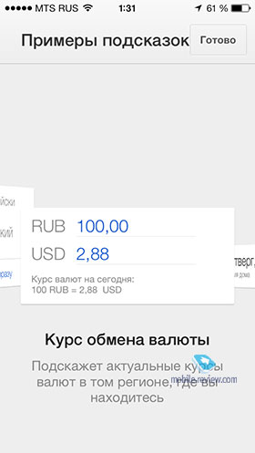 Google NowОбновленный «умный поиск» доступен и для владельцев iOS-устройств. Помимо обычного поиска в интернете, присутствует голосовой поиск, а также несколько карточек-подсказок, формируемых на основе вашей активности. В зависимости от места и ваших поисковых запросов приложение может предложить вам построить маршрут до работы, отобразить погоду или же открыть список сеансов в кинотеатрах. При поездках в другие страны автоматически появляются рекомендации достопримечательностей и конвертер местной валюты.