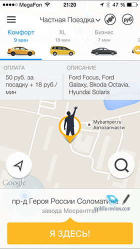 Как видите, цены очень «бодрят». Я не знаю, какой доход у каждого из наших читателей, чтобы оценить целесообразность использования Wheely, но рекомендую хотя бы разок прокатиться с ними, чтобы самим оценить качество сервиса, благо промо-код есть (в конце статьи). Из интересных особенностей Wheely отмечу услугу «трезвый водитель». Допустим, вы приехали в гости на машине, выпили и поняли, что совершенно не хотите оставлять свою машину в каком-нибудь Выхино или Алтуфьево. Вы заказываете «трезвого водителя», он приезжает на своем автомобиле и отвозит вас домой на вашей машине. Стоимость подачи машины — 300 рублей, 30 р./мин и 75 р./км, минимальная цена услуги — 2 000 рублей. City MobilВ принципе, большинство пользователей, заказывающих такси с мобильного, используют первые три сервиса, люди побогаче могут заказать распиаренный Wheely. Но ради любопытства я решил попробовать и приложение от City Mobil, уж больно хорошо оно было сделано. К тому же, машины этого таксопарка я регулярно вижу на улицах города.
