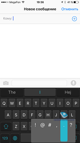У Swype на Android есть и множество других достоинств: поддержка различных тем, сохранение словаря, детальные настройки внешнего вида и поведения (к примеру, сокращение времени удерживания кнопки для вызова дополнительных символов). Что же из всего этого перенесли в iOS? Практически ничего. Синхронизации словаря у клавиатуры нет, дополнительных символов на самой клавиатуре не видно (они доступны по долгому нажатию, но их не видно на самих кнопках), работа предугадывания оставляет желать лучшего. Я не знаю, чем занимались разработчики версии под iOS, но за три месяца с момента выхода iOS 9 в клавиатуре не изменилось практически ничего, кроме появления платных тем оформления.