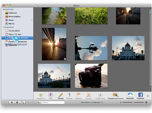 Возможны другие варианты, но все они, так или иначе, связаны с поиском контента на компьютере. В Mac поиск информации на компьютере настолько быстр и удобен, что лучшего на сегодняшний день найти не представляется возможным. Кроме того, этот поиск интегрирован во все стандартные приложения, представляя пользователю новый уровень удобства, который я предлагаю оценить на примере программы iPhoto. Мне достался компьютер с предустановленным контентом, за что стоит сказать спасибо. Итак, мы видим, что организованные в альбомы фотографии отсортированы по событиям. В левой части окна их можно отсортировать по лицам (программа умеет их распознавать), показать их в общем списке, или же сгруппировать их по местам на карте (вот для чего нужен GPS приемник в фотоаппарате). Можно создать собственные альбомы. Любой из этих альбомов можно быстро скопировать куда угодно простым перетаскиванием, при этом имея несколько вариантов сортировки. И какая разница, где лежат у вас фотографии, в каких папках, когда все и так под рукой? То, что есть в Apple, проще и функциональнее одновременно. Тут можно спорить, можно приводить множество примеров, в которых сортировка по папкам будет незаменимой, но для обывателя функционал iPhoto оказывается гораздо понятнее и удобнее. Другое дело, когда сортировка фотографий осуществляется на специфичную тематику и связана с работой. В данном случае гораздо удобнее использовать какой-нибудь фото-браузер. Приложение Picasa от Google имеет такой же функционал, как и версия для Windows, поэтому знакома многим читателям. Помимо собственно просмотра фотографий, программа позволяет редактировать их. ![]() ![]() ![]() ВидеоСтандартный Quick Time я недолюбливаю, хоть и использую его для просмотра фильмов. Он успешно справляется с основными форматами, но из-за довольно узкого «прогрессбара» не столь удобен. В качестве альтернативы советую VLC Player, который прочитает все или почти все форматы видео, да и прогрессбар у него во всю ширину экрана. ![]() ![]() Вообще, использовать компьютеры Apple и ноутбуки в частности для просмотра фильмов очень хорошо и правильно, поскольку тут есть качественный экран, хороший звук и время работы, которого легко хватит на два-три фильма. Плюс ко всему, можно положить его на кровать и не бояться, что от перегрева что-то сгорит. Да и «воздухозаборников» на корпусе нет - нет опасности закрыть нужное для вентиляции отверстие. Греться в таком случае он будет прилично - законы физики никто не отменял, но перезагрузок и зависаний на MacBook у меня не случалось. IM мессенджерыСтандартный iChat вполне подойдет для нетребовательного пользователя сервисов ICQ и Google Talk. Довольно простенькая программа, с помощью которой также можно совершать видеозвонки, имея учетную запись iChat. Проблема в том, что данный сервис не слишком распространен. ![]() ![]() ![]() ![]() Поэтому я советую воспользоваться бесплатной программой программой Adium, которую можно скачать вот тут.