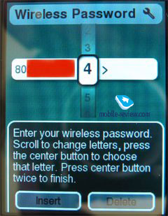 В этом месте мы практически в первый раз сталкиваемся с навигацией и вводом данных при помощи пульта. При небольшом навыке она становится чрезвычайно удобной, и за эргономику ввода данных и управления устройством разработчики заслуживают всяческой похвалы. Для ввода цифры или буквы необходимо при помощи навигационного колесика выбрать нужный элемент из списка и нажать центральную кнопку. Курсор автоматически перейдет к следующей ячейке ввода параметров. Аналогичный способ применяется при управлении ресивером. Прокрутка позволяет перемещаться по строкам меню, выбор осуществляется при помощи центральной кнопки или при помощи кнопок перехода вперед/назад. После установки соединения с точкой доступа в меню появляется пункт конфигурации ресивера.