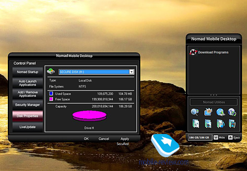 Собираясь в отпуск или на дачу, многие берут с собой ноутбук. Ноутбук многие берут с собой для того, чтобы смотреть фильмы, скидывать фотки, слушать музыку, работать, сидеть в сети. Но есть один маленький нюанс. Нюанс под именем память. В том смысле, что уезжая из знойного мегаполиса на знойные юга, хочется взять с собой фильмиков двадцать, причем в хорошем качестве, лучше вообще HDTV. А каждый такой фильмик «весит» гигабайта четыре минимум. Соответственно, надо много места на жестком диске. Которого зачастую нет, ибо еще ведь и музыка, и игры, и остальные развлечения. Понятно, можно ограничиться какими-нибудь жатыми копиями, но это не путь натурального перфекциониста. Путь упомянутого человека – либо поменять «жесткий» на более емкий, либо прикупить внешний модуль памяти гигов двести-триста. Вещь в хозяйстве полезная, не только отпуске, но и вообще в повседневных делах часто может пригодиться, правда ведь? Ну не знаю, пойти к другу и опустошить его компьютер, например, – очень ведь нужное дело. С работы унести все что можно тоже надобно. У меня лично такой гаджет есть, но я сегодня хотел бы рассказать вам про нечто новое и интересное – штучку под названием Toshiba SecuRed (200 Гб). Штучка мне очень понравилась. ![]() Дизайн и особенностиПро такие вещи я никогда статьи не писал, говорю сразу. Один раз вроде тиснул в некоем журнальчике маленький материал про круглый такой диск на пять гигабайт, было это года четыре назад, вот и все. Посему рассказывать буду о том, что вижу. Вижу я красную такую коробочку с большим логотипом, сканером отпечатков пальца, световым индикатором, который замаскирован под прорезь. На торце находится разъем miniUSB, вот и весь экстерьер. По торцу проходит крепко встроенная резиновая накладка, тут же надо сказать, что данная штучка имеет защиту от брызг, пыли, ударов, есть датчик падения. Надо сказать, что сборка очень плотная, практически военная, удержаться не удалось, и я слегка сбросил диск с третьего этажа в землю с травкой. Упал он на торец, никаких повреждений не зафиксировано, то же и с работой. Прежде чем я пошел на двенадцатый этаж бросать его на бетон, решил таки спросить разрешение на сие действо и не получил его. А жаль. Короче говоря, можно не переживать за диск вообще, убить его обычными бытовыми опасностями вряд ли получится, и это ощущение хорошее. ![]() ![]() ![]() ![]() Подключение к компьютеруКомплектный кабель хитрый, он имеет два разъема USB, один нужно подключать к компьютеру, только если какие-то проблемы с питанием, в остальных случаях он не нужен. Тут расскажу о некоей засаде, которая произошла с гаджетом: представьте, подключил его, а система не видит. Вот просто не видит и все, хотя индикатор загорелся, и диск крутится, это чувствуется по вибрации. Стал копаться, просматривать устройства – тоже нет. Попробовал другие порты, перезагрузился, позвонил добрым людям из агентства. Добрые люди сказали, что это такой хитрый экземпляр попался и нужно поплотней прижать «вилку» miniUSB к корпусу диска, что я незамедлительно проделал. Моментально заработало. Подумал-подумал и понял, что тут проблема в штекере, нашел другой кабель, без обрамления, все заработало быстро и неотвратимо, без сбоев. ![]() Тестирование производилось с Vista, на ноутбуке Toshiba X200. После первого подключения в появляющемся окне вас просят ввести и подтвердить пароль, пото