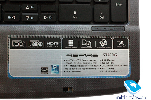 Изначально ноутбук, о котором мы с вами сегодня поговорим, я брал для обычного теста. Интересна мне модель стала по следующей причине: это был один из первых ноутбуков, обладающих возможностью отображения 3D-картинки. Причем способность эта никак не связана с технологией 3D Vision от NVIDIA - Acer Aspire 5738 DG построен на базе продукта от AMD, графической карты от ATI Mobility Radeon HD4570. Если вы посмотрите на конфигурацию, станет понятно, что платформа прошлого поколения, сейчас AMD для массового рынка предлагает более мощные устройства - об этом можно почитать во второй части данной статьи.
