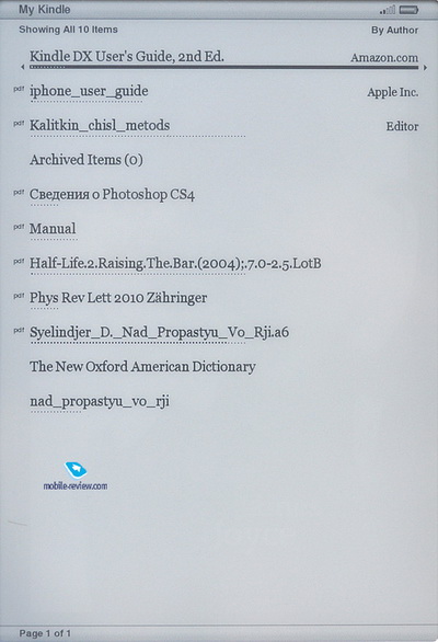 Поставки Amazon Kindle DX International начались в январе 2010 года. Таким образом, думается мне, устройство вполне можно считать современным и предъявлять к нему определённые требования. К сожалению, устройство получилось недоработанным, но это не останавливает людей в России перед тем, чтобы приобщиться к прекрасному. Некую аналогию можно провести с Blackberry, iPhone – не используя заложенных в устройство функций, человек счастлив уже благодаря самому факту обладания вещью. Amazon Kindle – типичное устройство, ориентированное на продажу контента. Типичная модель продаж в таком случае – низкая цена на само устройство, которая компенсируется оплатой дополнительных услуг. Другой вариант – некоторые модели телефонов Nokia, при покупке которых даётся неограниченный доступ к музыкальному каталогу. ![]() К сожалению, в случае Kindle такая система даёт сбой. Устройство продаётся за 500 долларов, контент отнюдь не бесплатен. Книги и подписка на журналы стоят несколько долларов (впрочем, есть и бесплатные образцы). ![]() В характеристиках устройства гордо заявлено, что компьютер не требуется, ведь внутри установлен 3G-модем. Очевидно, компанией Amazon поощряется использование читалки в связке с их замечательным интернет-магазином книг. К сожалению, американские мечты с треском и грохотом разбиваются о российские реалии. Насколько я могу судить по беглому чтению тематических форумов на русском языке, приобретать книги на языке оригинала горят желанием далеко не все. Лично я в системе Amazon регистрироваться не стал и данные своей пластиковой карты не вводил. Таким образом, нижеследующий текст практически полностью посвящён нецелевому использованию устройства. Если Вас интересует исключительно легальный контент, купленный у Amazon, то обзор вряд ли покажется интересным. Так как комплект поставки достаточно скуден, и обсуждать его в отдельной главе нет смысла, хотелось бы отметить одну вещь – чехол не поставляется вместе с устройством, из этого можно сделать два вывода: первый – Amazon пожадничали, второй – использование вне дома в компании не считают приоритетным. Стоимость аксессуара - порядка 50 долларов в США, в России – около 3000 рублей. ![]() Конструкция, внешний видKindle DX - весьма громоздкий аппарат, на весу долго держать его не получится – руки достаточно быстро устают. ![]() Практически всю лицевую часть устройства занимает экран, однако места, чтобы ухватиться руками, с избытком. Снизу от экрана расположена клавиатура, справа – элементы управления. ![]() На нижнем торце расположен порт microUSB и два стереодинамика, на верхнем – слайдер, отвечающий за блокировку и спящий режим, а также разъём 3.5 мм для наушников, на правом – сдвоенная клавиша регулировки громкости. Левый торец никаких функциональных элементов не содержит, равно как и задняя часть. ![]() ![]() ![]() ![]() Крышка батарейного отсека металлическая, практически не прогибается. К сожалению, пластиковая накладка выше крышки, под которой, видимо, скрывается антенна радиомодуля, скрипит и смазывает впечатление от очень хорошей сборки аппарата. ![]() УправлениеКлавиши на клавиатуре миниатюрны, по какой причине их не сделали больше – для меня загадка. Кроме того, верхний ряд кнопок – буквенно-цифровой, что вносит определённые неудобства. Русских букв на клавиатуре нет. ![]() Кнопки для управления читалкой делятся на три блока. Первый б