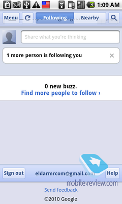 Google Buzz – еще одна социальная сеть?Лично я против того, чтобы каждая компания начинала выпускать свои варианты социальных сетей. Это какой-то полный беспорядок и утекание времени в непонятных попытках отследить всю социальную активность близких и просто интересных знакомых. Знаете, какой самый частый вопрос задают мне последний год? Как настроить трансляцию из Twitter в Facebook или наоборот. Люди не успевают писать в оба сервиса, но не хотят отказываться от прочтения лент в них. Вот и возникает искусственное умножение информации. Копирование одной и той же информации. Проблема в том, что комментарии к той или иной заметке не появляются тотчас же в другом сервисе. И потом мучительно приходится вспоминать, где же вам ответили. То ли в Twitter, то ли в Facebook. Поэтому инициатива Google по созданию собственной социальной сети под броским названием Buzz навевает на меня не скуку, отнюдь нет. Она заставляет судорожно подумать, что, не дай бог, эта сеть станет популярной, и тогда придется настроить трансляцию и в нее. Или вести там аккаунт, чего делать совсем не хочется. Но станет ли она популярной? В Wave от Google большинство обычных потребителей так и не разобрались, вокруг Buzz также нет однозначной реакции. Кто-то недоумевает, кто-то сдержанно хвалит, но однозначной оценки нет. Давайте взглянем на этот сервис и попытаемся понять, что это и для кого. Где брать BuzzСуществует два варианта сервиса: один - для настольного использования, второй - для мобильных устройств. В настольной версии это опция в аккаунте Gmail, в левом меню появляется кнопочка Buzz, и далее вы переходите к обсуждениям. Пока она появилась отнюдь не у всех пользователей, поэтому я пробовал мобильную версию на Android.