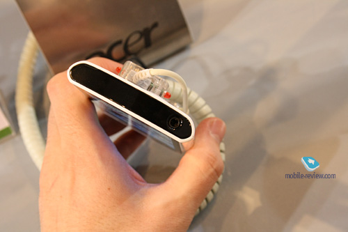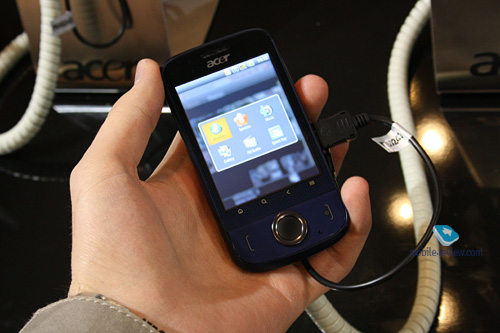 Acer. Удивить ценой?Хотя начну я все же с описания тех нескольких WM-аппаратов, которые были представлены на стенде компании. Acer neoTouch P300Боковой слайдер с QWERTY-клавиатурой, пластиковый, очень легкий по ощущениям (хотя по ТТХ не скажешь), выполнен в стиле космических технологий - это когда дизайн вроде бы и современный, но сравнить не с чем и описать сложно. Вот именно таким мне показался P300. Краткие характеристики аппарата: