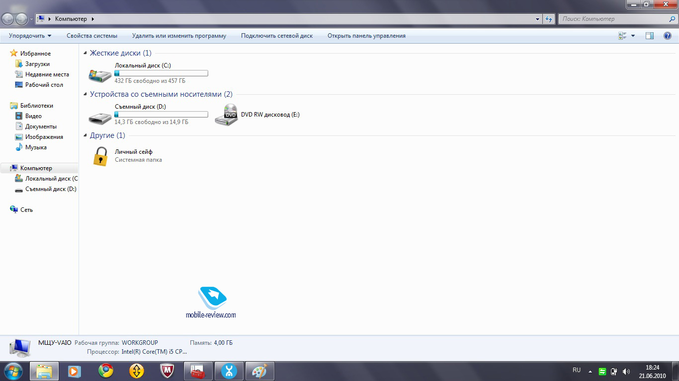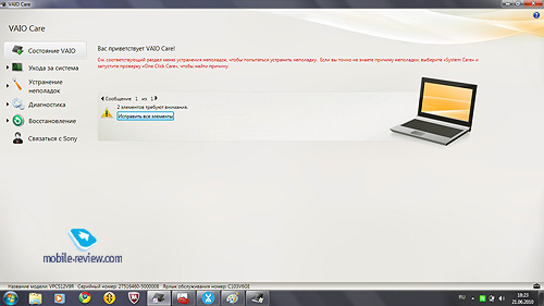 ![]() ![]() ![]() ![]() Тут чувствуется приятный аромат универсальности. Придраться не к чему. Есть Bluetooth, поддерживается профиль 2.1 с EDR, Wi-Fi, WiMax работает с Yota. Честно сказать, пробовал 4G один раз, находясь в центре города. Все прекрасно работает, и я думаю, для многих наличие этой функции будет большим плюсом при выборе. Клавиатура, тачпадЗдесь надо отметить одну важную особенность: у S есть пусть небольшая, но поддержка запястий, это делает набор текста очень удобным. Говорю это как человек, что-то пишущий ежедневно и подолгу. Клавиатура - пять баллов. Ход кнопок невеликий, но есть этакая приятная упругость, все на своих местах, до всего можно дотянуться. Классика Sony, когда просто садишься и начинаешь работать. Вот тачпад маленький, кнопки небольшие, между ними находится дактилоскопический сенсор. Удобная вещь не только для защиты от случайного проникновения в офисе, но и для запуска каких-либо приложений. ![]() ![]() Подсветка клавиатуры. Вот, чего лично мне не хватало в ноутбуках Sony очень давно. Пустяк, вроде бы, и мелочь, но для тех, кто привык есть один и в темноте - незаменимая «фича». Подсветка включается автоматически, датчик расположен над клавиатурой, рядом с кнопками VAIO и Assist. Поговорим о том, что они делают. Кнопка VAIO настраивается, у меня она отвечала за быстрое отключение звука. Что касается Assist, то при нажатии происходит запуск программы VAIO Care, тут вам и уход за системой, и устранение неполадок, и диагностика, и восстановление. Я обещал, что расскажу про предустановленное ПО в ноутбуках VAIO подробнее - потихоньку собираю материал, скоро будет. ![]() ![]() Замечу, что тут, как и в других ноутбуках VAIO 2010-го года, есть выпадающая сверху панель с иконками приложений. Нагрев, шумСистему охлаждения нельзя назвать бесшумной, этакий шелест. Привод тихий. Нагрев становится заметен при выполнении каких-либо серьезных задач, держать устройство на коленях становится неприятно. ![]() ЗвукДинамики средние по громкости, но зато мне понравилось качество звука. Хорошо. С записью подкастов проблем не возникло. Использовал микрофон - той же фирмы. ПитаниеНебольшой блок питания, знакомый уже по серии Z, Y и некоторым другим. Время работы в автономном режиме оставляет желать лучшего, в режиме высокой производительности - около двух часов. Блок питания брать с собой обязательно, что я и делал. Время полной зарядки около трех часов. ![]() ![]() Модификации и производительностьВ России, насколько я понял, в рознице можно найти три модификации ноутбука, попробую кратко перечислить отличия и примерные цены: Sony VAIO VPC-S11X9R/S Процессор Intel Core i3, частота 2,13 ГГц, 4 ГБ оперативной памяти, жесткий диск 320 ГБ, DVD-привод, кроме Wi-Fi, Bluetooth, поддерживается WiMax (работает с Yota). Корпус серебристого цвета. Цена около 40 000 рублей. Sony VAIO VPC-S11M9R/B Процессор Intel Core i5, частота 2,4 ГГц, 4 ГБ оперативной памяти, жесткий диск 320 ГБ, DVD-привод, кроме Wi-Fi, Bluetooth, поддерживается WiMax (работает с Yota). Корпус серебристого цвета. Цена около 45 000 рублей. Как видно, основное отличие - процессор. Sony VAIO VPC-S11V9R/B Процессор Intel Core i5, частота 2,5 ГГц, 4 ГБ оперативной памяти, жесткий диск 500 ГБ, DVD-привод, кроме Wi-Fi, Bluetooth, поддерживается WiMax (работает с Yota). Корпус серебристого цвета. Цена около 50 000 рублей ![]() ![]() Операционная система Windows 7, «Профессиональная». Во всех модификациях есть подсветка клавиатуры, разъем для подключения док-станции. С процессора