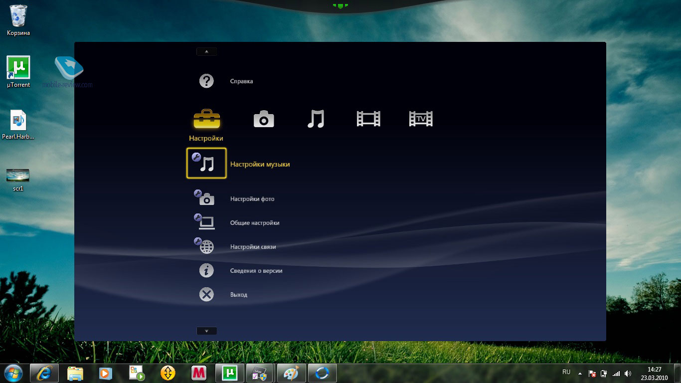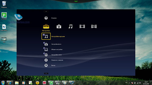 Фирменные приложения находятся в волнообразной панели, выезжающей вниз при наведении курсора. Находится она в верхней части дисплея, насколько я понял, называется эта штука VAIO Gate. Здесь есть ссылки на MSN, Internet Explorer, Evernote (удобная программа для переноса заметок). Есть Media Go, пользователям телефонов Sony Ericsson не придется устанавливать софт. Есть и фирменная программа Picture Motion Browser, она идет в комплекте с фотоаппаратами Cybershot; VAIO Media Plus с фирменным крестообразным интерфейсом помогает быстро поменяться контентом с использованием DLNA. Ноутбук без проблем удалось подключить к PS3 и воспроизвести с приставки фильмы, фото, музыку. Про VAIO Care много не скажешь, утилита диагностики, устранения неполадок, восстановления и так далее. Думаю, эта программа поможет пользователям. Как всегда, антивирус McAfee, плюс Norton Online BackUp. Данные по запуску стандартных приложений: