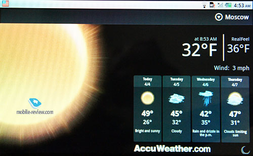 СвязьАбзац про позиционирование я решил разместить в разделе про модули связи – именно они определяют схему использования. Если в Streak 5 Dell решили обыграть идею смартфона с большим экраном, и, соответственно, имеются все возможные способы связи. В Dell Streak 7 нет привычного приложения телефона. В варианте с 3G-модулем есть возможность отправлять SMS-сообщения. Одним словом, только передача данных, но не голоса. Датчики и модули представлены во всей красе: здесь есть Wi-Fi, Bluetooth 2.1, GPS, G-сенсор, сенсор освещенности и датчик приближения. Возможность быть постоянно подключенным к сети придется, кстати, если использовать планшет в качестве навигатора – сервисы от Google, конечно же, предустановлены на устройстве. ![]() ![]() ![]() ![]() ![]() ![]() ![]() Dell по-прежнему использует собственный разъем для зарядки. Кабель для синхронизации также используется для подзарядки аккумулятора, так что старайтесь его не терять. ![]() ![]() ![]() ![]() ![]() Вместе со Streak7 в продажу поступает док-станция. Она подходит для обоих вариантов планшета. Предположу, что с выходом 10-дюймового планшета к док-станции можно будет подключить и его. ![]() ![]() ![]() ![]() Станция крайне простая. Глянцевый верх, пластиковая спинка для опоры гаджета. Низ прорезинен. На заднем торце имеется порт для соединения зарядки (через miniUSB), Line out-выход для вывода звука. И, наконец, здесь есть полноценный HDMI. Подключив кабель (в комплекте не поставляется), планшет тут же начинает дублировать картинку на большой экран, звук при этом можно также перенаправить на телевизор либо выбрать вариант озвучения через динамики Streak. При установке планшета в док автоматически запускается специальная версия оболочки. Здесь можно посмотреть погоду, запустить слайд-шоу из изображений, установить будильник, послушать музыку. ![]() ![]() ![]() ЭкранЭкран в Streak 7, мягко говоря, разочаровывает. В качестве защиты выступает Gorilla Glass. Разрешение WVGA, то есть 800 на 480 точек. Нет, это не самый ужасный вариант, но решение, используемое Dell, не блещет результатом. Углы обзора крайне малы. Их хватит для индивидуального использования планшета, но не более того. На солнце экран выцветает. ![]() ![]() Поддерживается мультитач, его удобно использовать при просмотре фотографий, использовании браузера. ![]() ПроизводительностьАппаратная часть также претерпела изменения, и они, в отличие от дисплея, хорошие. В Streak 7 используется решение NVIDIA – Tegra2, два ядра по 1 ГГц каждый. Этот чип, помимо очевидных достоинств в лице комфортного перемещения по меню, дает возможность смотреть фильмы в HD-разрешении. Но состояние дел пока обстоит не лучшим образом. Если трейлеры фильмов (формат .mov, mpeg4) даже в 1080p воспроизводятся без проблем и торможений, то с mkv-файлами возникнут проблемы. Для плавного воспроизведения придется немного покопаться, подобрать правильный проигрыватель. С играми всё обстоит значительно лучше. Тут никаких замечаний или нюансов нет. Самые требовательные к железу проекты, доступные в Android market, на Streak 7 играются очень хорошо. ![]() ![]() ![]() Мало того, в фирменном магазине Tegra Zone NVIDIA предлагает специально разработанные под Tegra игры. Помимо отсутствия тормозов, здесь перерисована картинка под HD-экран, кое-где переделаны текстуры, добавлены эффекты. В Tegra Zone есть демо-версии, есть новости, трейлеры, интервью. К концу года обещают еще выпустить 50-100 игр в качестве добавки. Цены варьируются в