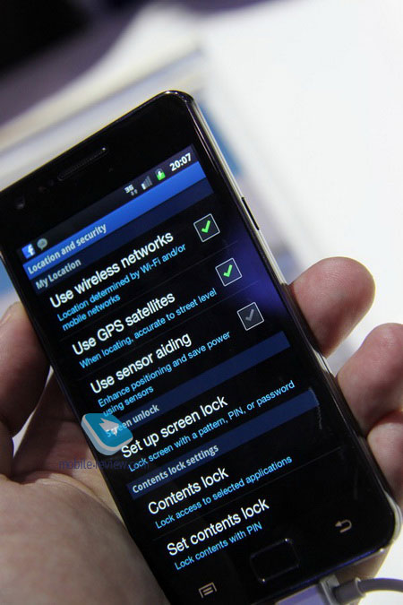 A few readers were outraged in their comments that I have paid so little attention to the looks of the phone. Unfortunately, I am no good at discussing the tastes of other people. The Galaxy S sales have shown that many have found its design to their liking. There have not been any critical changes in the looks of S II, not a single one. The rear panel used to be glossy – now it is rifled and pleasant to touch and does not catch scratches. And, yes, it is plastic. Those of us who buy phones for metal panels may stop reading right now – they will not find the article any good. ![]() ![]() The phone's depth as compared to Galaxy S is not really drastically different. The perception from these phones is rather similar. Those who believe that SuperAMOLED Plus screen is just a marketing trick should compare it to the picture of the regular SuperAMOLED. I am sorry for the not the best photos taken from the stand (the light was not favorable), but they can still give you the right impression: even brighter, sharper, general perception is better. ![]() Samsung announced that the phone's graphical processor now has four cores. The company believes that it gives such a performance increment that no other phone today possesses. I will not go deeper into the details of this solution, it is not really important. I will just describe my impressions from the performance of the demo phones – it is light speed. Immediate transition between the desktops, a slight touch and the phone responds right away. After just an hour with Galaxy S II my HTC Desire became irritatingly slow and laggy. Who has never tasted bitter, knows not what is sweet. Galleries open so quickly that I cannot compare the performance with any other phone. Not immediately but very quickly. Later today MobileReview.com YouTube channel will be releasing a video with a demo of the interface performance that, I believe, will astound you. Unfortunately, I cannot upload the video from my hotel – the internet is too slow. The shake control is taken to a whole new level: you mat shake, flip, tap the phone and every move has its own meaning. You may use it to control a lot of the phone's functions: there is a preinstalled manual on the shake control. The phone also features the NFC technology that is used in payment systems in some countries: it allows you to pay your fees for parking or pay for your purchases in a store. Such systems will be developing and Samsung has included this feature to make the phone cutting edge. ![]() I did not attach any importance to the fact that the phone features support for USB on the Go – I do not think there are a lot of people who actually use this function. Data sync and data transfer to a PC is now possible via Wi-Fi, but the key feature here is that there is no need for any additional software. You only need to fill in your browser the URL prompted by the phone and you have access to all the data stored in it. Very convenient. Only Motorola offers a similar solution. The lost phone control. You may remember that in late 2010 HTC presented a new version of Sense in London. One of its features was the ability to lock a lost phone, trace it or make calls from it. Samsung has gone even further. You may lock your phone from a web-page and send any message to its lock screen. You may trace the location of the phone – it will be displayed in your browser. You may also limit the calls, prohibit SIM switch, and listen to the conversations on it. Samsung has considered practically every possible way of reacting to the loss of the phone. This attempt might be designed to lure in corporate users. The latter have received a lot of good news like, for example, full support for Microsoft Exchange ActiveSync – an immediate access to the corporate database. There are also inbuilt means of the phone's memory encrypting, realized by a separate crypto chip to improve the general performance of the phone. Incredible: you may come across all these features separately presented in many phones, but not all together. Undoubtedly, it is yet premature to claim that this phone will overnight become a hit among corporate clients. But a great leap forward is taken. In the Settings menu I have come across an interesting option – choice of the function to be activated when the phone is placed in the dock station. I suppose the company is planning on releasing such an accessory – it would be very appropriate. The Time application now features a new screen option that may also be designed for the dock station. ![]() I will now briefly cover certain functions and applications. The camera works very fast – photos and videos are also saved very quickly. The settings are clear you choose between the options on the screen. In my opinion the photos look pretty good on the screen. When I will be reviewing this phone I will have to run the camera extensively to see what it can do. ![]() ![]() ![]() ![]() ![]() ![]() ![]() The preinstalled picture editor and the video editor are very good – they offer a maximum functionality. ![]() ![]() ![]() ![]() ![]() ![]() Gaming is a lot of fun, the graphics is superb, and the rendering is immediate. ![]() ![]() ![]() ![]() The phone features the voice recognition from Vlingo – the phone can put down your speech. We will have to find out how it works in real life, during the presentation everything looked perfect, I believe in practice it won't be that easy. ![]() ![]() ![]() ![]() Below you will find a lot of pictures of the phone that need not any comments. ![]() ![]() ![]() ![]() ![]() ![]() ![]() ![]() ![]() ![]() ![]() ![]() ![]() ![]() ![]() ![]() ![]() ![]() ![]() ![]() ![]() ![]() ![]() ![]() ![]() ![]() ![]() ![]() ![]() Bottom lineI like this phone without any "buts": in technical terms it is the best phone currently on the market. It is in fact the best Android Phone: the fastest, the best screen, the best connectivity – UMTS, HSUPA; Wi-Fi direct, VoIP, voice recognition di