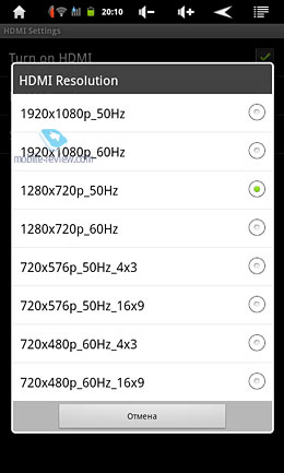 ВидеоВ планшете установлен свой собственный видеоплеер, он меня приятно удивил: помимо того, что играет лучше, чем MX videoplayer (играет без задержек те файлы, которые в MX воспроизводятся с подтормаживанием), он еще корректно отображает .ass субтитры – это очень приятное дополнение; .srt субтитры тоже поддерживаются, но не всегда корректно отображаются. Штатный плеер спокойно играет следующие форматы: .mkv, .mp4 и .avi разрешением до 720р включительно. Штатный плеер не умеет переключать аудиодорожки. ![]() ![]() ИнтерфейсыWi-Fi b/g/n – стандартный модуль, нареканий к его работе нет. miniHDMI – на мой взгляд, наличие этого разъема – существенный плюс для бюджетного планшета. В настройках есть специальный пункт, посвященный HDMI.