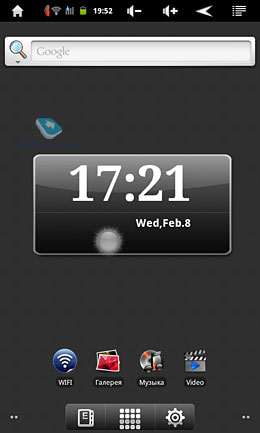 А теперь о втором минусе планшета: в нем отсутствуют Android Market и Google Apps. Как мне объяснили, это связано с тем, что Google предъявляет жесткие требования для сертификации технических устройств, и данный планшет некоторым из них не удовлетворяет. Вместо Android Market в 3Q RC0702B установлен SlideMe Market, в нем можно найти основные приложения, но ассортимент существенно ниже, чем на официальном Android Market. В принципе, если вы не нашли нужную программу на SlideMe Market, то можно на 4pda. Производитель практически не изменял «голый» Android, только добавил несколько приложений и значков, которые расположились в верхней панели: кнопки громкости, кнопки «назад», «меню» и «домик». На мой взгляд, дублирование кнопок значками излишне. Мне не удалось получить на устройстве рут ни одним из известных способов; учитывайте этот факт, если планируете купить устройство, а затем получить рут и поставить Android Market.