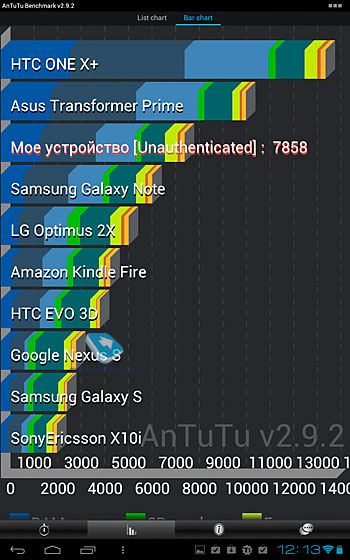 Во-первых, на нем уже получены права суперпользователя. Подробную информацию о возможностях, получаемых с их помощью, вы можете прочесть тут. Во-вторых, уже предустановлены целых два файловых менеджера. В-третьих, есть интересная настройка полноэкранного режима. В настройках экрана вы можете включить Full Screen mode, благодаря которому нижняя панель исчезает совсем. Зачем это нужно? При чтении, просмотре видео или играх она отнимает драгоценное место на экране, и даже если приложение поддерживает полноэкранный режим, то эта нижняя панель не исчезает, а только затемняется. С помощью Full Screen mode ее можно скрыть совсем, и вот тут-то нам и пригодится кнопка «Домой», которая поможет вернуться в главное меню. К слову, ее расположение не самое удачное, плюс, могли бы добавить также и кнопку «Назад». В общем, эта настройка мне безмерно понравилась, наконец-то я могу пользоваться всеми семью дюймами в планшете. И напоследок я бы отметил корректную установку Swype с помощью инсталлера. Он прекрасно распознал планшет и установился. И вот это меня искренне порадовало, так как инсталлер Swype не любит неизвестные модели и просто отказывается на них ставиться. ПроизводительностьВ Fire используется двухъядерный процессор от Amlogic, работающий на частоте 1,5 ГГц, объём оперативной памяти — 1 ГБ, ёмкость внутреннего накопителя — 16 ГБ. В синтетических тестах Fire показывает отличные результаты, однако важно помнить, что эти цифры весьма условны. В настройках есть собственный менеджер работы с процессором, там можно указать один из трех режимов работы — обычный, высокая производительность и энергосбережение. На деле же планшет работает поразительно быстро. Скажу честно, включая Fire, я морально был готов к стандартным тормозам рабочих столов, как в других бюджетных моделях, однако они листались на удивление плавно, конечно, какие-то микроподтормаживания всё же были, но листание в Fire намного плавнее, чем у конкурентов. Иногда появлялись проблемы с разблокировкой, планшет включался чуть дольше обычного. Работа в браузере также не вызывала никаких проблем. Страницы грузятся быстро, однако на тяжелых сайтах были подтормаживания при быстрой прокрутке. С играми проблем не было, тот же Asphalt 7 отлично работал. Подводя итог — плавность работы Fire на голову выше большинства конкурентов, хотя и проигрывает тому же Nexus 7. ВидеоВ Fire предустановлен собственный видеоплеер, такой же используется в iconBIT Slim PRO, поэтому рекомендую вам ознакомиться с частью обзора, посвященной ему: /articles/2012/iconbit-nettab-slim-pro.shtml#9 Что касается впечатлений от просмотра видео на Fire, то тут всё выше всяких похвал. Отличный экран и шикарнейшая поддержка множества аудио- и видеокодеков (H.264, xvid, DivX), а также большинства популярных контейнеров (MP4, AVI, MKV) делают просмотр видео комфортным. Я с удовольствием просмотрел с Fire несколько серий любимых сериалов и аниме. ЧтениеИзначально в модели предустановлен Kingsoft Reader HD, но, к сожалению, его интерфейс на китайском языке, поэтому я воспользовался привычным ZXReader http://android.mobile-review.com/news/3774/ Благодаря включению полноэкранного режима в планшете при чтении у вас появляется одна-две (в зависимости от размера шрифта) лишние строки, что не может не радовать. Высокое разрешение и качественная матрица положительно сказываются на удобстве чтения. ИнтерфейсыWi-Fi (b/g/n). В планшете установлен ста