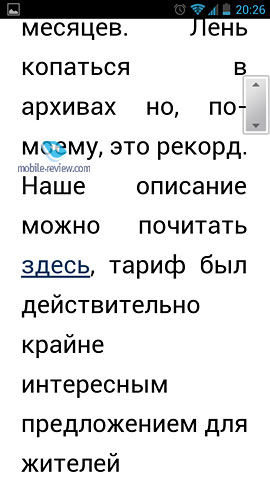 ![]() Отмечу, что, на мой взгляд, приложение отлично справляется и с переводом целых приложений. Если вы часто читаете иностранные статьи со смартфона, то этот словарь станет отличным помощником. Браузер. В Google отказались от стандартного браузера в пользу Chrome, однако Asus не спешат последовать их примеру (что правильно, ибо Хром еще сыроват). Они оставили стоковый браузер из 4.0 и немного его модернизировали. Во-первых, был добавлен ползунок для быстрой навигации по странице. А во-вторых, добавили возможность масштабирования текста, которую так любит Артем в браузерах НТС. Если при зумировании текст не помещается на экране, то он автоматически подстраивается под размер экрана. Классная и удобная функция, в этом плане Asus молодцы.
