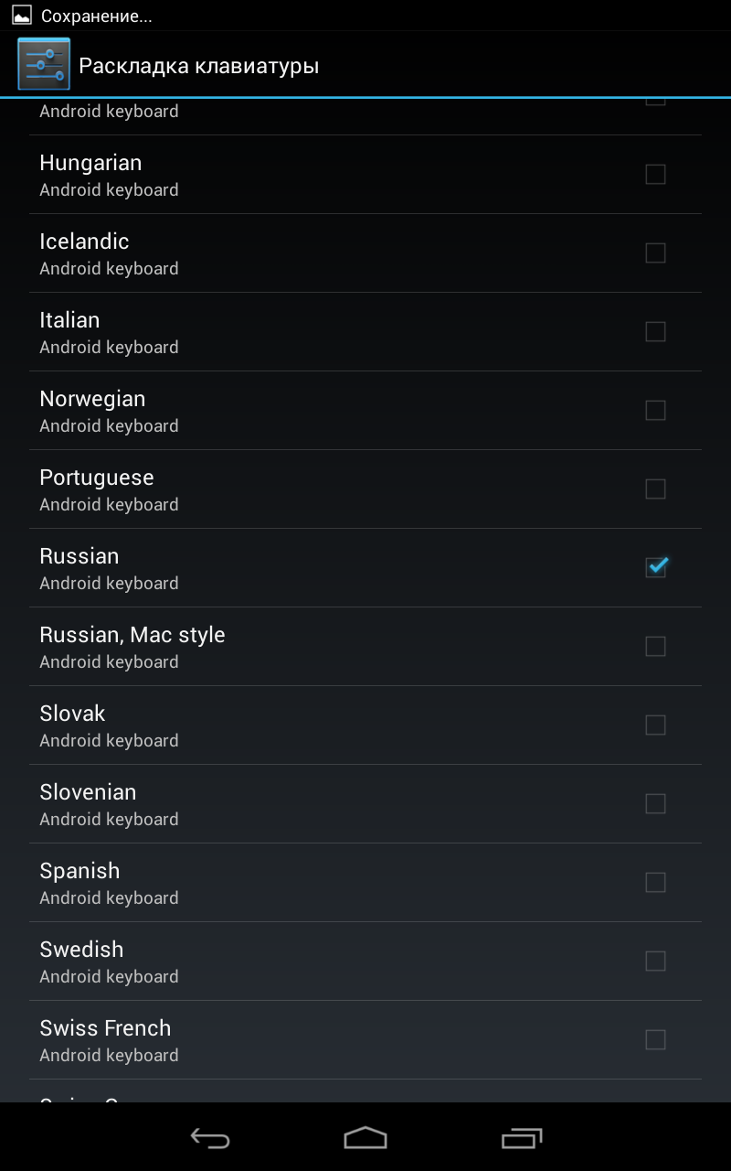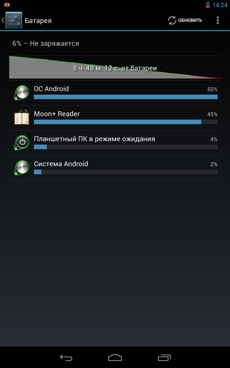 Также напомню, что на Nexus7 используется «телефонный» интерфейс, благодаря чему некоторые приложения (например imo beta) открывают свои телефонные, а не планшетные версии. За время использования устройства, на него пришло около трех обновлений. Это безумно приятно через пару дней после обсуждения новой версии ОС видеть ее на своем планшете. Своевременные обновления являются огромным плюсом Nexus 7. чувствуешь, что устройство поддерживается, а не бросается на произвол судьбы. На данный момент ни один производитель не может тягаться с устройствами от Google в скорости и длительности обновлений. Автономная работаВ планшете установлен аккумулятор ёмкостью 4325 мАч. Для начала позвольте немного субъективных показателей. При использовании Nexus 7 около полутора часа в день на средней яркости, он разряжается за неделю. Если говорить об объективных оценках, то при чтении на яркости в 10% с выключенным Wi-Fi аккумулятор разряжается за 8 часов 48 минут. Просмотр HD-видео на максимальной яркости разрядил планшет за 6 часов. Что касается игр, то здесь Nexus 7 продержался около 4 часов. Несмотря на то, что показатели весьма средние, у меня сложилось впечатление, что планшет довольно долго работает от одной подзарядки. Может быть тут дело в том, что в спящем режиме он почти не потребляет энергии. Фронтальная камераВ Nexus 7 решили отказаться от задней камеры и оставили только фронтальную. Решение абсолютно верное и я его полностью одобряю. Камера поддерживает видеозвонки в Skype, впрочем, качество видео весьма посредственное. ![]() Беспроводные модулиWi-Fi (b/g/n) – к работе модуля нет никаких претензий. Поддерживается технология Wi-Fi Direct. GPS – в качестве навигационного ПО используется Google Maps. Холодный старт занимает 12 секунд. Bluetooth 3.0 – поддерживаются все популярные профили, в том числе A2DP. 3G (опционально) — у меня на тесте была Wi-Fi версия, поэтому сказать что-то о работе 3G-модуля не могу. USB-HostПланшет не поддерживает подключение флешек через OTG-кабель по умолчанию, но вы можете воспользоваться этой функцией с помощью сторонних программ, например Nexus Media Importer. Также, вы без проблем можете подсоединить к нему клавиатуру. В последних версиях Android есть специальное меню настроек для работы с ней.