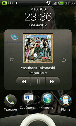 ![]() Отдельно хотелось бы отметить музыкальное приложение. Я наблюдаю за Sense начиная с версии 2.1 и хорошо вижу, как оно менялось, изначально мне не хватало поддержки папок, однокнопочных гарнитур и скачивания обложек, сейчас обложки уже можно скачивать, а в комплект к Rhyme положили полноценные наушники с пультом, надеюсь, в следующих версиях добавят и поддержку папок. По функционалу приложение от НТС уступает тому же Poweramp, но выигрывает за счет интерфейса.