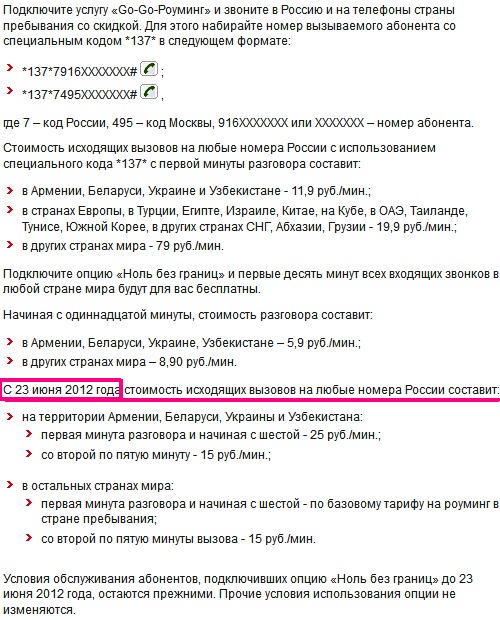 МТС: Пестрые новостиНовые цены в международном роуминге и обновления Data-опций. Самые «информационно-насыщенные» и важные для кошелька новости порой оказываются самыми «замороченными» и сложными для восприятия. Однако вчитываться и разбираться приходится, особенно в новости категории «А ведь мы вас предупреждали!». ЛирикаСледует понимать, что большинство опубликованных новостей рождается отнюдь не из желания оператора напомнить о «себе, любимом». Есть обязанность предупреждать об изменениях в тарифах и услугах, эту обязанность в МТС выполняют дотошно и скрупулезно. В новостном анонсе может и должна содержаться малоинформативная «завлекалочка», это нормальная практика. Зато в самой новости почти всегда содержится исчерпывающая информация или, как минимум, присутствуют ссылки на изменившиеся разделы сайта. Правда, не всегда эта информация легко вычленяется из общего фона новости. Отдельная тема — мастерство заголовка и вводной части, которые будут видны в общем списке новостей. Здесь всё дышит оптимизмом даже в самых безнадежных случаях. К примеру, новость об отмене посекундной тарификации с сохранением прежней цены минуты была анонсирована как «Теперь вам больше не нужно торопиться закончить разговор!». Самая распространенная хитрость заключается в том, что неприятные для абонента факты камуфлируют бравурной риторикой и перечислением всяческих преимуществ услуги или тарифа в целом, а новая цена или параметр мельком проскальзывают в совершенно нейтральной фразе. 90% прочитавших новость не обратят внимание на факт или маленькую циферку, но они есть, и оператор свой долг информирования абонентов через СМИ выполнил. Наконец, даже в объективно положительных новостях (такие тоже бывают) порой присутствуют неочевидные тонкости. Еще важнее то, что улучшение условий/параметров нередко связано с действиями регулятора или негативной судебной практикой. В таких случаях новость может являться индикатором значимых изменений. Это была попытка объяснить важность абсурдного, на первый взгляд, формата «новостной обзор новостей». Чем мы, собственно, сейчас и займемся. ![]() «Go-Go-Роуминг» и «Ноль без границ»Новость актуальная и очень «в тему» наступившего сезона летних отпусков. При всей «широкомасштабности» изложения (см. скриншот выше) суть вопроса сводится к информации о подорожании исходящих вызовов при подключенной опции «Ноль без границ». Остальное «наполнение» можно использовать в качестве напоминания о существовании CAMEL-роуминга и варианта «Go-Go-Роуминг», который действительно много дешевле стандартных предложений МТС. Правда, работает по самой недружелюбной версии технологии call-back (с набором номера через специальный код), но для клиентов МТС экономия впечатляет: например, цена звонка из Европы через «Go-Go-Роуминг» составляет всего-навсего 19.90 руб. вместо стандартных 79 руб. за минуту. Что касается опции «Ноль без границ», то ценовые изменения на исходящие вызовы выглядят следующим образом: