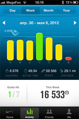 Статистика подробная – как и в веб-части, видны очки за разные промежутки времени, активность в течение дня. Отображаются так называемые Milestone, то есть «путевые метки» или «вешки» - скажем, 25 тысяч очков. В качестве поощрения по мере их достижения проигрываются ролики с забавным персонажем, который прыгает туда-сюда. В общем, полный кайф и радость. Если говорить о том, как я использовал браслет – просто ходил, когда он разряжался, заряжал, изредка забывал его дома. Надо включиться в эту игру – и тогда очки будут набираться легко. В самом деле, что сложного – вместо того, чтобы проехать пару остановок на автобусе, лучше пройтись. Машину припарковать не около дома, а на парковке метрах в ста от него. И так далее, красно-зелёная полоска подвигает на такую деятельность. ![]() ![]() ![]() ![]() Кстати, я также использовал браслет Jawbone Up – и могу сказать, что Fuel Band гораздо интереснее. Поясню, удобнее крепление (нормальная застёжка, а не два хвоста), удобнее зарядка (видно, насколько заряжен браслет), удобнее синхронизация (согласитесь, подключать браслет в наушниковый разъём, рискуя потерять заглушку – это не очень хорошо). Не стоит забывать и про дисплей, и про то, что Up’ы часто выходят из строя. Единственный плюс Up – это будильник, но, к сожалению, меня он ни разу не разбудил. ВыводВот мы и подобрались к последней части, в ней рассмотрим недостатки Nike+ FuelBand. Их, по большому счёту, всего два. Первый – плавать с ним на руке нельзя, можно только мыться. Второй – цена. В Америке рекомендованная цена на такой гаджет – 150 долларов, то есть на 50 долларов выше, чем на Jawbone Up, и цена более чем оправдана. Можно заказать на eBay – там найти браслет можно с доставкой долларов за 200-250. Если же посмотреть на российский рынок, то тут раздолье для спекулянтов, Jawbone Up стоит 5-7 тысяч рублей, а Nike+ Fuelband – от 8 тысяч рублей и вплоть до 15. Что могу сказать. Если очень хочется – то можно купить и за 8, и за 10, и, наверное, за 15 тысяч рублей. Можно поступить чуть разумнее и заказать на eBay (выйдет 6-7 тысяч), если не понравится – продадите за номинал. Мне лично гаджет понравился, но не настолько, чтобы приобрести его себе в постоянное пользование. Тут всего лишь вопрос цены – и не более. Редакция благодарит магазин iCover.ru за предоставленный на тест браслет Nike+ Fuelband. Илья Тараканов (i.tarakanov@mobile-review.com) Поделиться: Мы в социальных сетях: Есть, что добавить?! Пишите... eldar@mobile-review.com