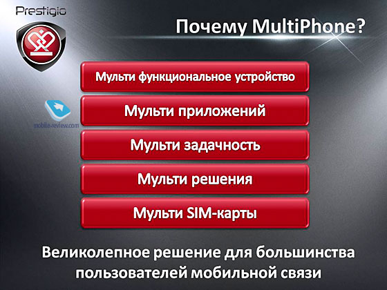 Презентация компании PrestigioСодержание:ВведениеДля начала буквально пару слов о Prestigio: бренд принадлежит дистрибуторской компании Asbis, оборот которой в 2011 году превысил 1 млрд. долларов. По итогам первого полугодия 2012 года Prestigio занимает четвертое место по поставкам планшетных компьютеров (первые три: Apple, Samsung, Acer) в России. Честно говоря, это достижение поражает, так как, например, я, очень мало слышал о Prestigio. Компания сосредоточена на выпуске планшетов, смартфонов, видеорегистраторов, USB- и HDD-накопителей, а также GPS-навигаторов и различной периферии. Еще немного информации о Prestigio вы можете получить на слайдах ниже. ![]() ![]() ![]() ![]() Президент ASBIS Group, основатель и главный идеолог бренда Prestigio — Сергей Костевич присутствовал на мероприятии и выступал в качестве основного спикера. ![]() Мы не будем дословно пересказывать выступление Сергея, а просто сосредоточимся на новинках и главных особенностях представленных моделей. Желающие посмотреть саму презентацию могут это сделать по ссылке ниже. ПланшетыНа мероприятии было представлено два планшета: семидюймовый Prestigio MultiPad 7.0 Prime Duo и восьмидюймовый Prestigio MultiPad 8.0 3G Note. ![]() ![]() Prestigio MultiPad 7.0 Prime Duo Вначале рассказали о семидюймовом планшете. На презентации все его особенности были представлены одним слайдом, я же постараюсь рассказать о них подробнее. ![]() Начнем с самого важного — с дисплея. Здесь используется семидюймовый экран с разрешением 1024х600 точек, поддерживается мультитач до пяти одновременных касаний, тип матрицы — IPS+. Сам планшет на стенде представлен не был, поэтому судить об экране пока рановато. ![]() В качестве начинки используется двухъядерный процессор Amlogic AML 8726-MX с частотой 1,5 ГГц, объём оперативной памяти — 1 ГБ, ёмкость внутреннего накопителя — 16 ГБ, есть слот для карточки памяти, также поддерживается USB-Host через специальный переходник. Толщина планшета всего 8,9 мм. ![]() Спинка выполнена из алюминия. В комплекте будет идти красивый кожаный чехол-кармашек. Лично мне больше нравятся чехлы-книжки, но, разговаривая с коллегами после презентации, я отметил, что некоторые предпочитают именно такие «кармашки», так что это вопрос вкуса. ![]() ![]() Ёмкость аккумулятора 3200 мАч. Более подробно об автономной работе мы поговорим в полноценном обзоре. Однако, уже имея дело с планшетами, обладающими аналогичной ёмкостью, я могу предположить, что MultiPad 7.0 Prime Duo будет работать около четырех часов в режиме видео и семи в режиме чтения. И самую «вкусную» особенность я оставил напоследок. Модель работает на Android 4.0, планируется обновление до 4.1 Jelly Bean! Если в компании не будут медлить и оперативно выпустят это обновление, то планшет станет намного интереснее своих конкурентов. Теперь о цене. Для начала напоминаю, что в продаже будет только версия с Wi-Fi, без 3G. Рекомендованная розничная цена составит 7 000 рублей, старт продаж намечен на декабрь. Успех этого планшета напрямую зависит от скорости его обновления до Android 4.1, так как если опустить этот факт, то в конкуренты к нему сразу же напрашивается iconBIT Matrix II, чья цена на данный момент составляет 5 600 рублей.